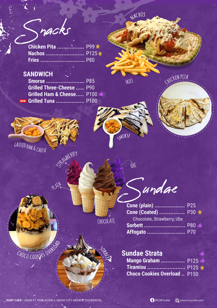Welcome to RORY Cafe! Enjoy a variety of mouthwatering dishes, refreshing beverages, and a warm, inviting ambiance in Sagay City